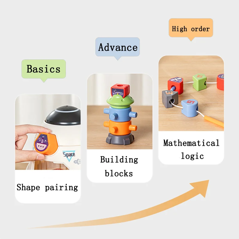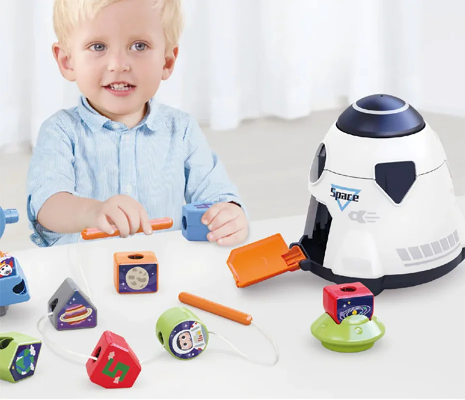- طراحی جذاب و سرگرمکننده: فضاپیمای جادویی با طراحی سرگرمکننده، کودک را به یادگیری از طریق بازی و تعامل با اشکال و