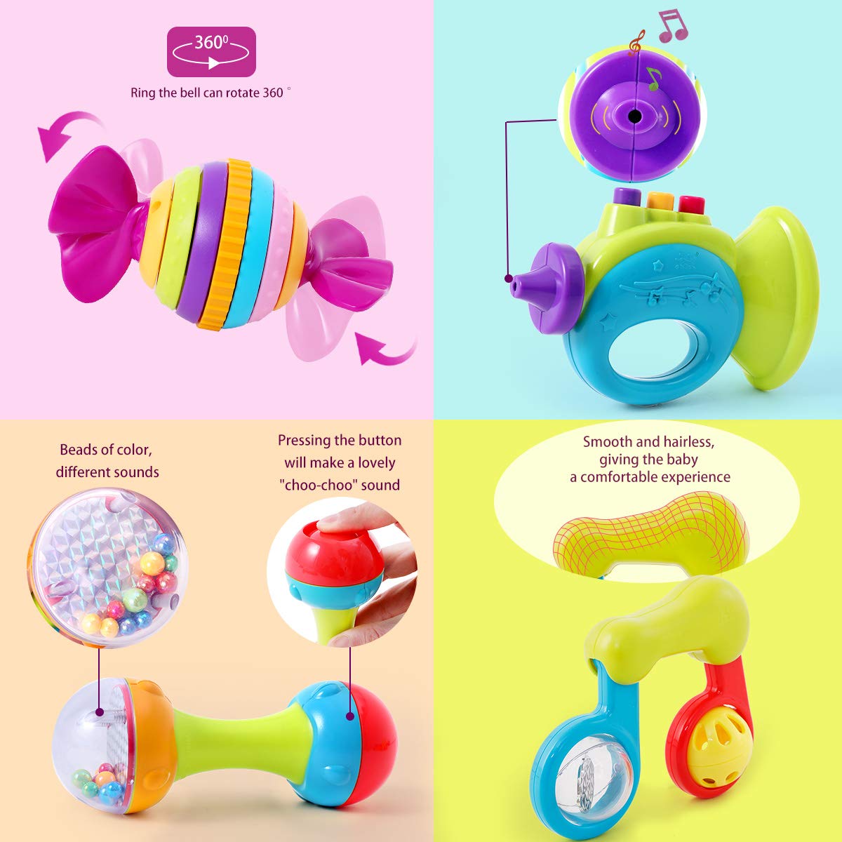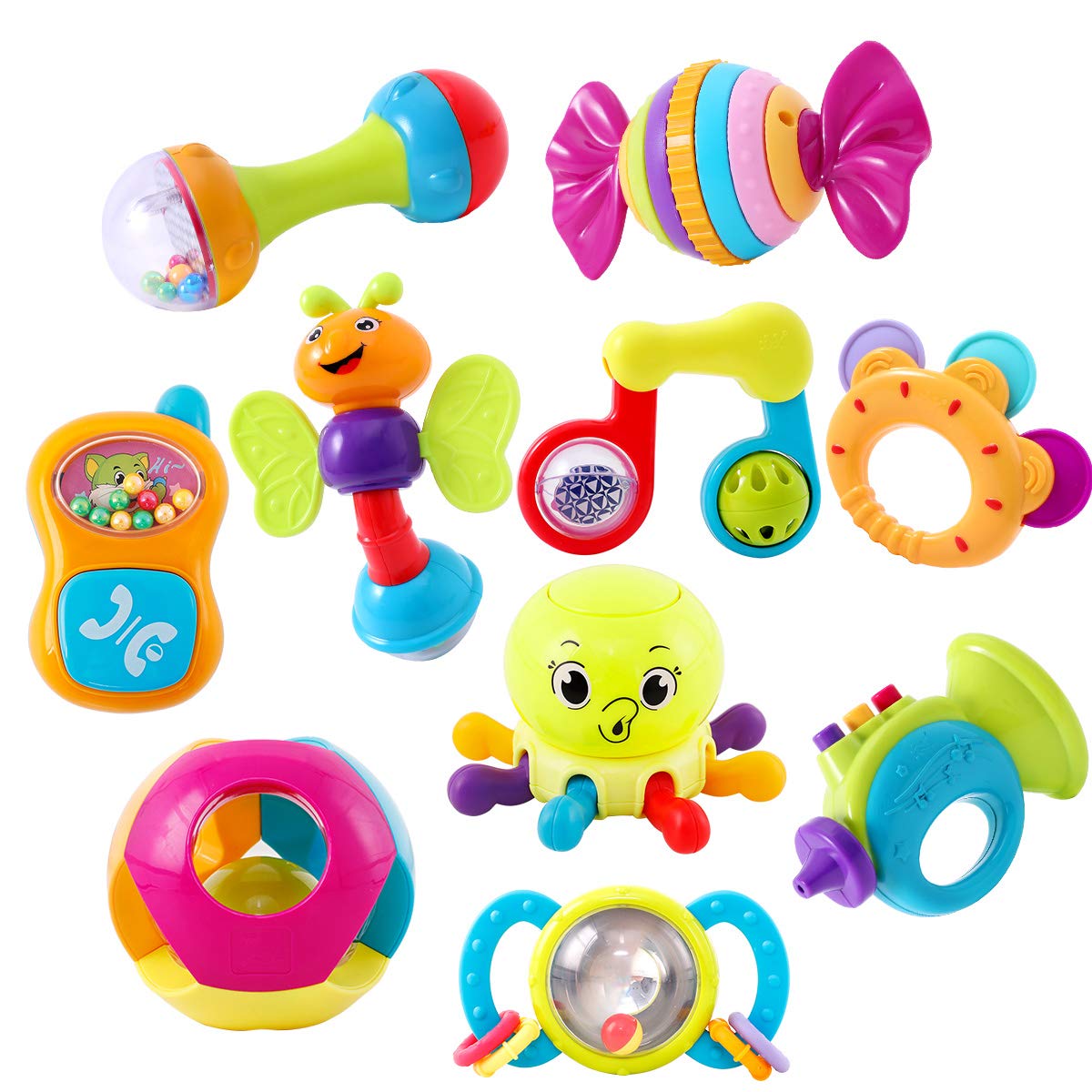 ویژگی های پک جغجغه 939 نوزاد 10 عددی هالی تویز Huile toys :