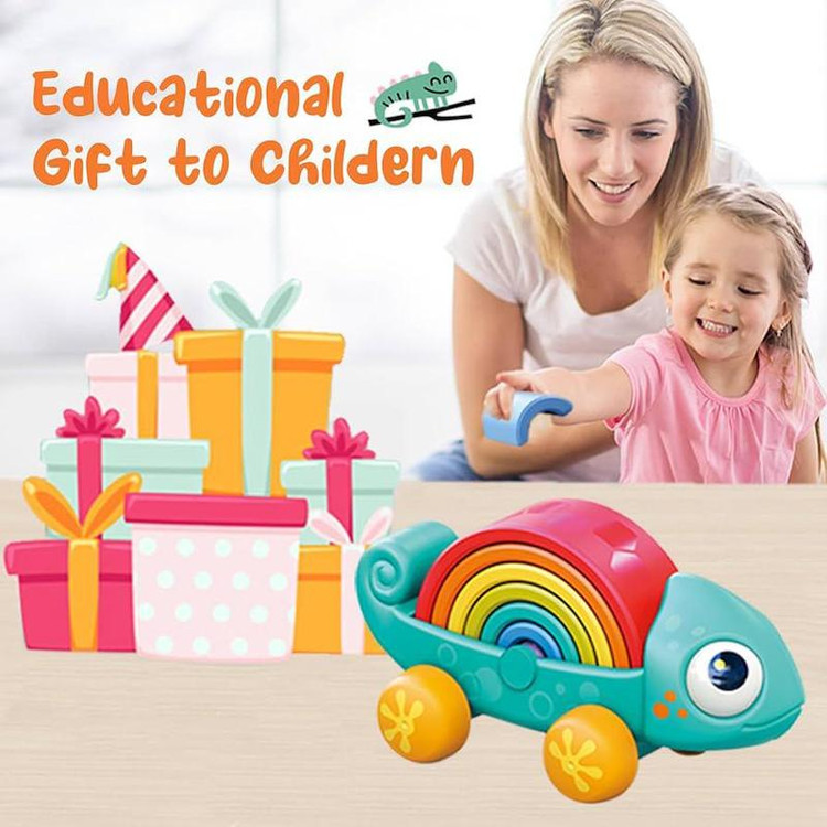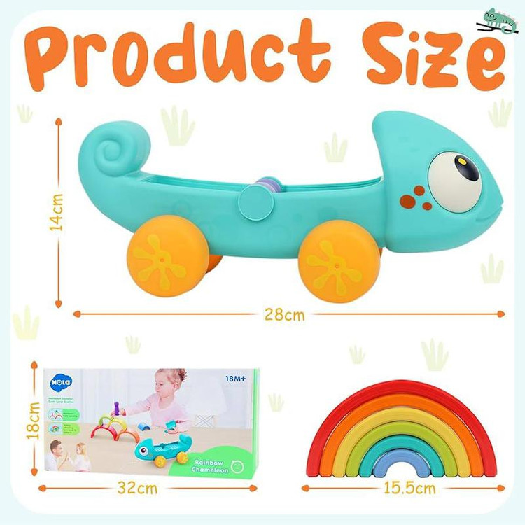 قطعات این محصول دارای یک آفتاب پرست بامزه با چهار چرخ، 6 عدد قوس رنگین کمانی و یک عدد استوانه رنگی است. برای این بازی کودک می تواند با این قوس های رنگین کمانی طرح ها و اشکال مختلف درست کند. همچنین آفتاپ پرست این محصول دارای یک طناب می باشد که کودک هنگام راه رفتن می تواند آن را همراه خود بکشد. این اسباب بازی دارای یک ذفترچه راهنما می باشد که کودک برای ساختن اشکال می تواند از آن کمک بگیرد.