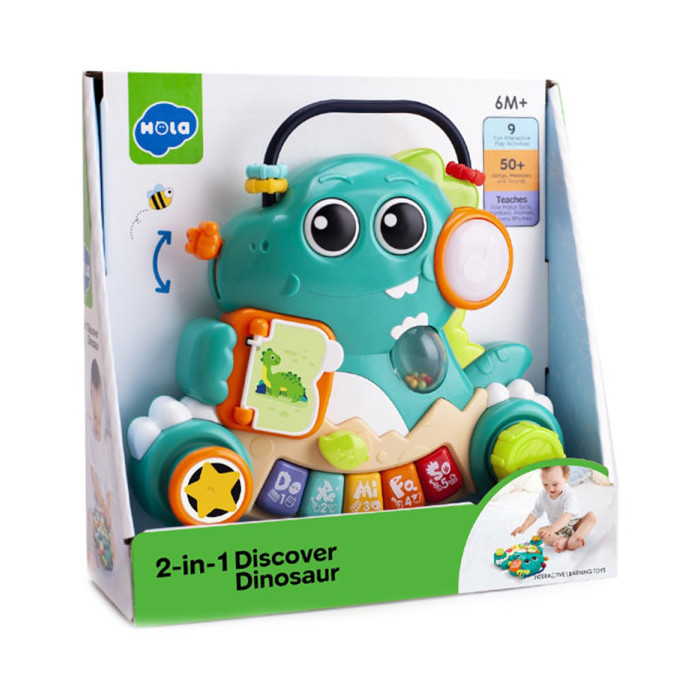 دایرههای روی پای دایناسور میچرخند که موجب تقویت مهارتهای دست های ظریف کودک می شوند