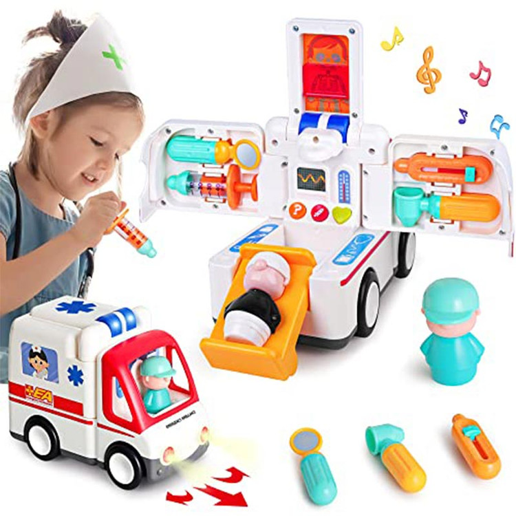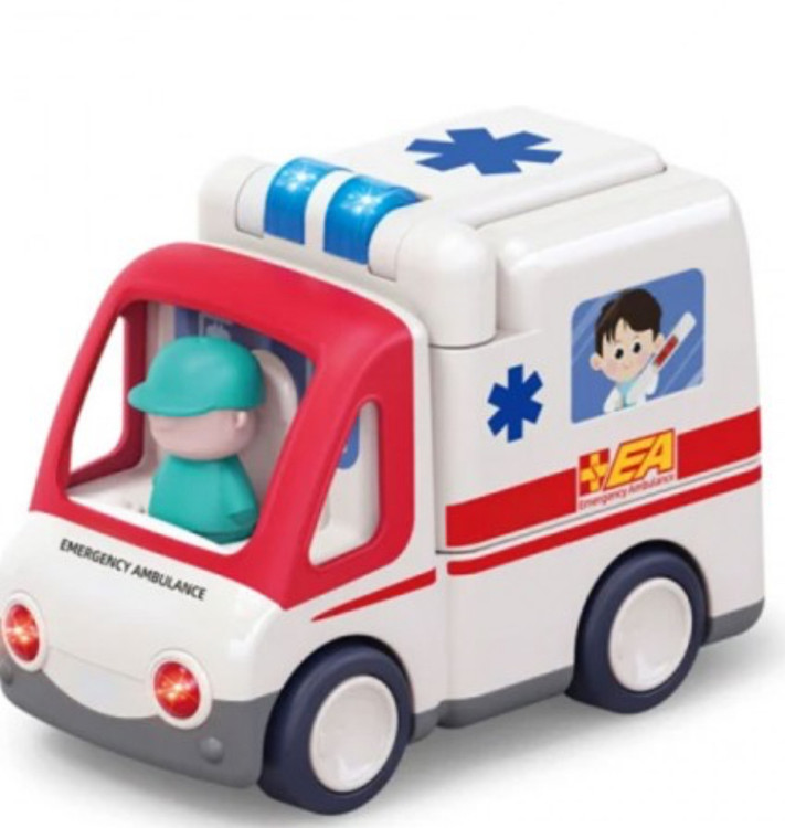 در داخل آمبولانس تعدادی وسیله پزشکی مثل تب سنج، آمپول، ابزارهای مخصوص معاینه دهان و دندان، یک فیگور راننده آمبولانس و یک فیگور بیمار قرار دارد. آمبولانس قابلیت حرکت و پخش موسیقی دارد و به همین دلیل برای کودکان جذابیت بالایی دارد.در قسمت پشت اسباب بازی، چند دکمه وجود دارد که با فشردن آنها می توانید صداهایی مانند تپش قلب، فشار خون و اسکن را بشنوید و کودک را با آنها آشنا کنید. درب آمبولانس از هر دو طرف باز می شود و چراغ های آن روشن می شوند.این محصول بوسیله سه عدد باتری قلمی تغذیه می شود و قابلیت حرکت به اطراف را در سطوح مسطح دارد. حرکت این محصول به این صورت است که در یک مسیر مستقیم حرکت نمی کند و به تمامی جهت ها حرکت کرده و با برخورد به یک مانع مسیر خود را عوض می کند و به حرکت خود ادامه میدهد.